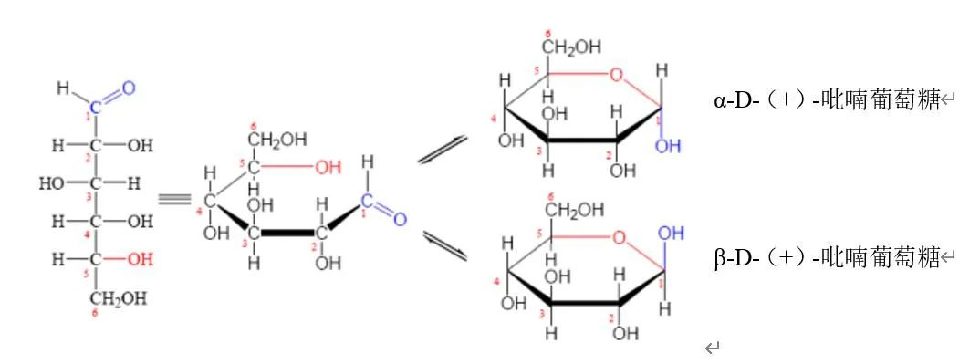 葡萄糖雖然是直鏈的含有端位醛基的還原糖,但 葡萄糖的5位羥基和1位醛基易縮合成六元環(huán)的半縮醛,我們稱之為吡喃糖。然后根據(jù)1號位羥基的構(gòu)型,分為α吡喃糖和β吡喃糖。(此處的構(gòu)型是手性的體現(xiàn),如果一個多碳有機物某C原子上面連的四個基團(tuán)都不一樣,這個C具有手性)