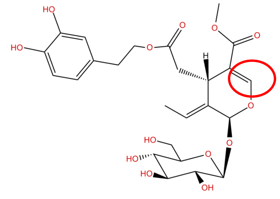 圖6. 橄欖苦苷的結(jié)構(gòu)以及可以被亞硫酸鹽加成的地方