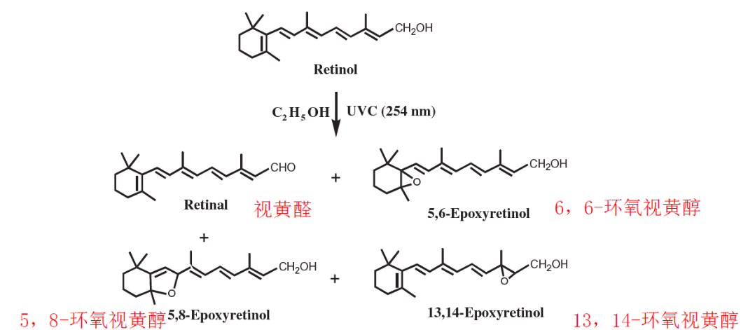 圖14. 視黃醇在UVC(254nm)下的光分解產(chǎn)物