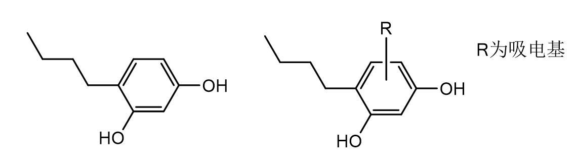 圖1. 4-丁基間苯二酚與引入吸電基的結(jié)構(gòu)