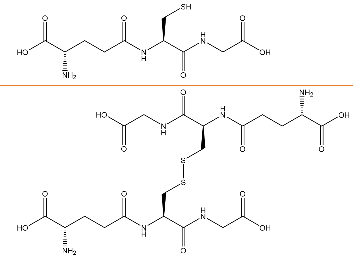 15. 谷胱甘肽(上)和氧化谷胱甘肽(下)的結構
